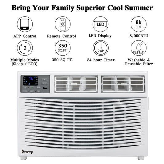 ZOKOP 8000 BTU Heat And Cool Window Air Conditioner With Wifi Controls