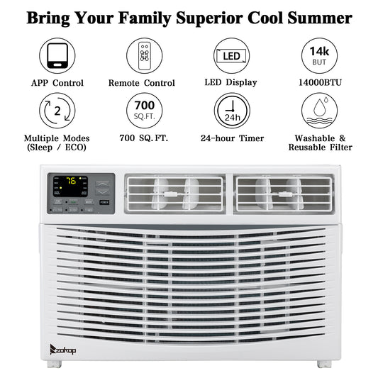 ZOKOP 14000BTU 115V Window Air Conditioner With WiFi and Eco Mode for Medium Rooms