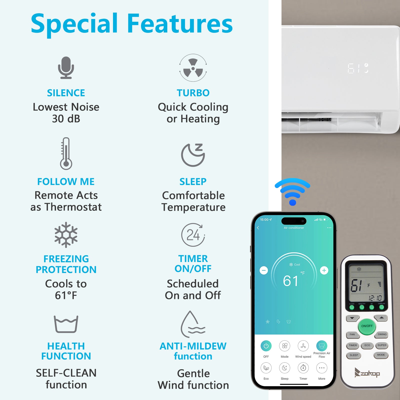 ZOKOP 11000BTU Wifi Enabled Mini Split Air Conditioner & Heater