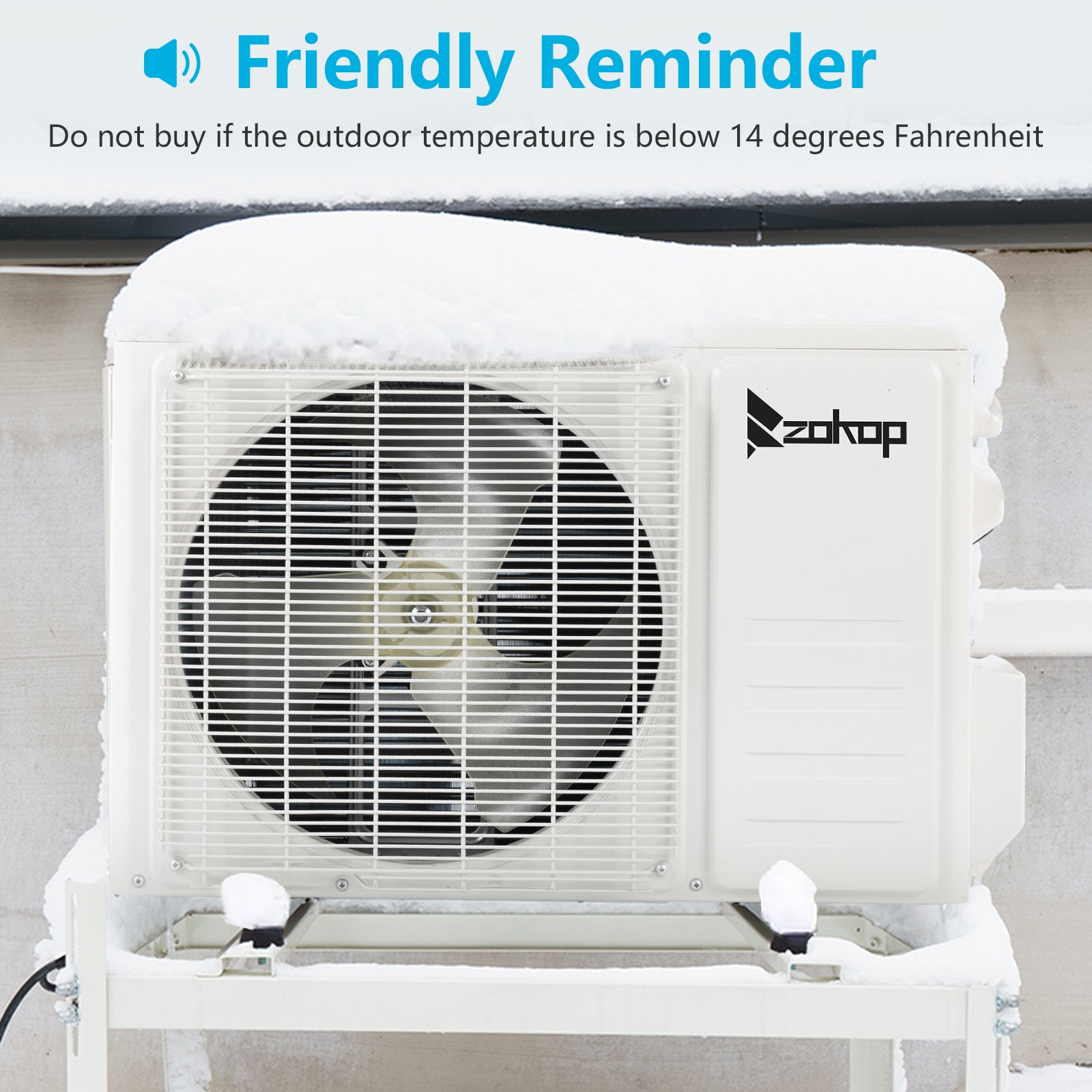 - [Energy Saving] ZOKOP the speed of the air conditioner equipped with frequency converter directly affects the service efficiency of the air conditioner. The frequency converter is a control system used to control & adjust the speed of the compressor to make it always in the best speed state, so as to improve the energy efficiency ratio (at least 30% more energy-saving than the conventional air conditioner). This 17 SEER2, 11000BTU, 115V~60Hz,AHRI Certified AC unit with a heat pump is featured high quality compressor for more efficient cooling and longer working life; Higher SEER grade & Eco-friendly design which leads you for money saving ( please confirm voltage before making purchase) .