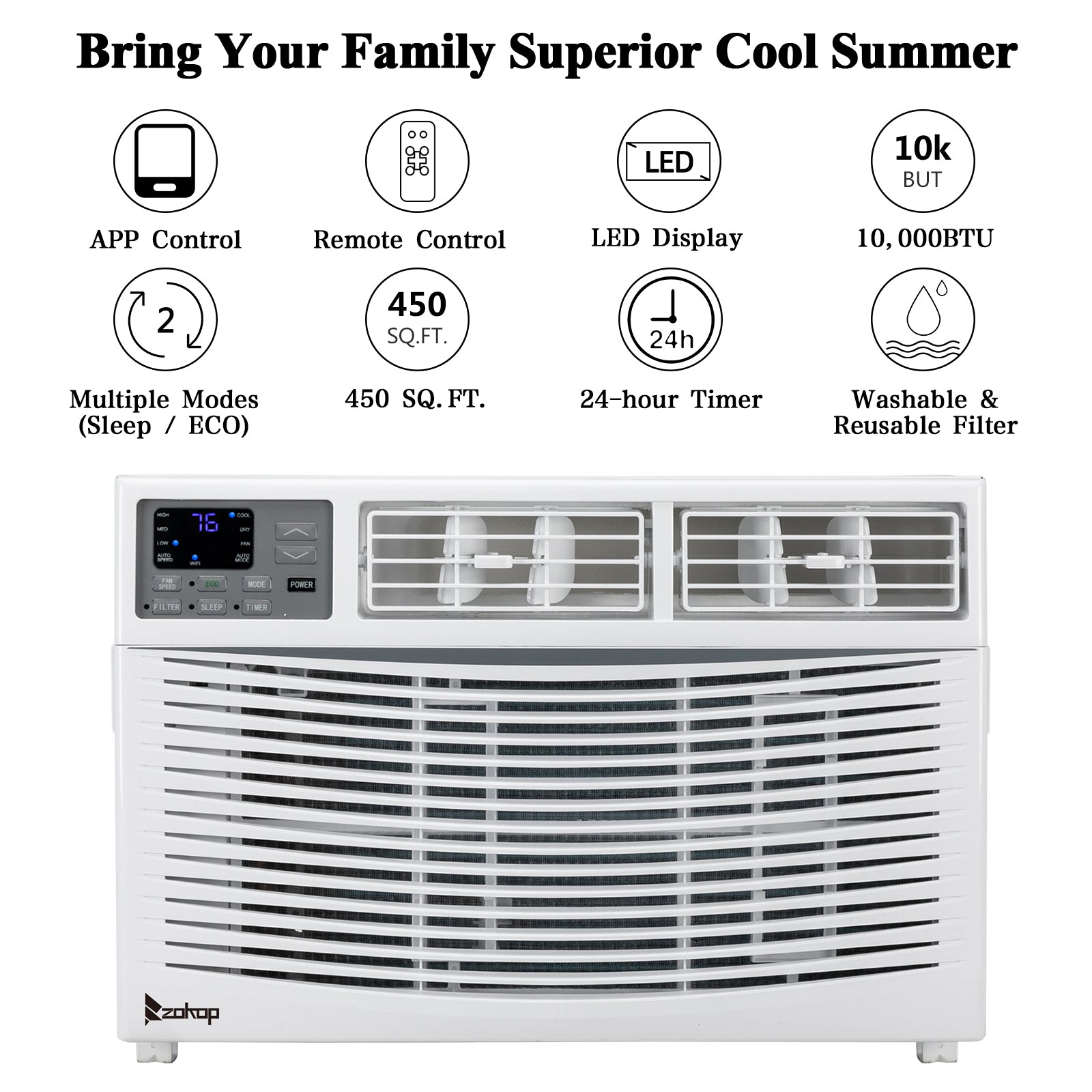 - [ Easy Operatio ] Operating this conditioner is an easy-understanding and enjoyable cooling experience ( 61℉ - 88℉). We can set all functions on LED digital display or remote control or even with phone app ( Sleep Mode, Fan Speed Selection, 24 Hour Timer, ECO Mode, Auto Mode, and Fan Mode )