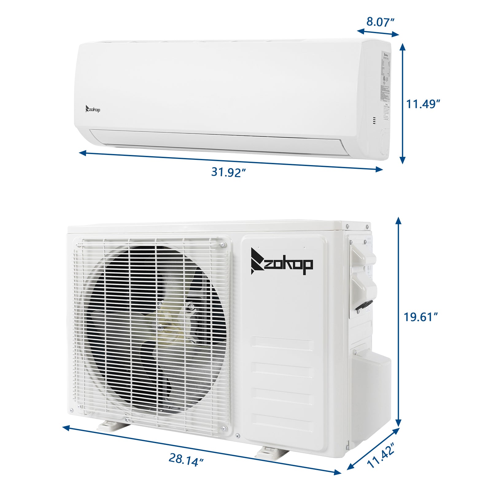 - [Energy Saving] ZOKOP the speed of the air conditioner equipped with frequency converter directly affects the service efficiency of the air conditioner. The frequency converter is a control system used to control & adjust the speed of the compressor to make it always in the best speed state, so as to improve the energy efficiency ratio (at least 30% more energy-saving than the conventional air conditioner). This 19 SEER2, 12000BTU, 208/230V, 60Hz, AHRI Certified AC unit with a heat pump is featured high quality compressor for more efficient cooling and longer working life; Higher SEER grade & Eco-friendly design which leads you for money saving (please confirm voltage before making purchase ).