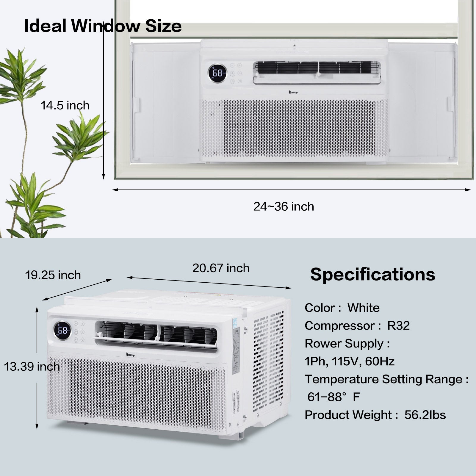 - ✔ Simple Installation: Thanks to its pre-assembled design of side panels, this AC unit saves you at least 30% time on installation compared to traditional window AC units. Easy steps of sliding it in and securing with screws included (windows width: 24" - 36"; window height: 14.5")